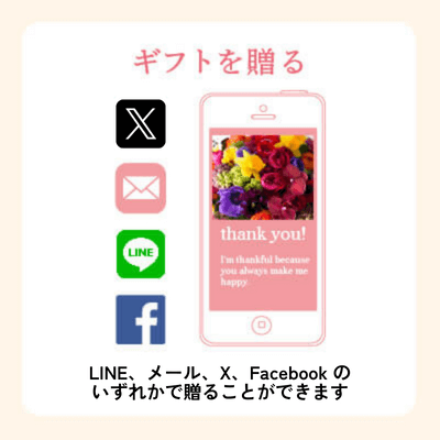 日比谷花壇のFlower eGift は 感謝やお祝いの気持ちにeギフトチケットを添えて LINEやメールなどで気軽に贈ることができるサービスです。